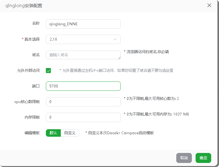 端口映射:5700(记得点击右侧的+号,否则端口设置不生效)