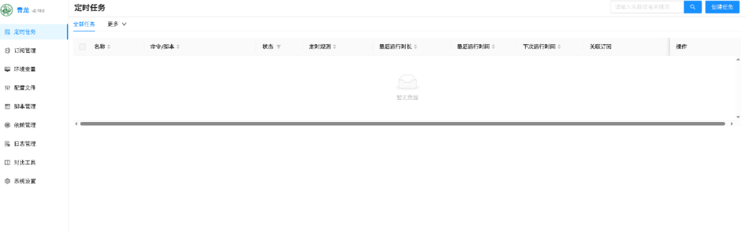 如下图所示即成功部署了青龙面板,接下来进行配置。